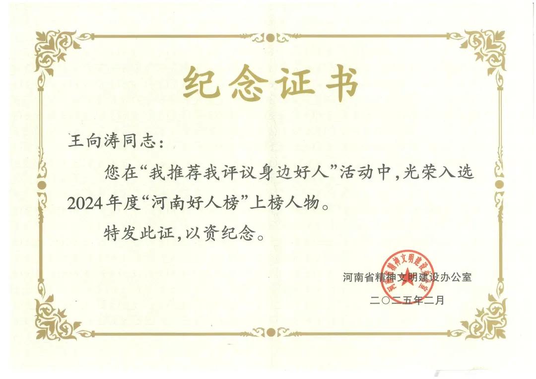2月25日晚,“我們河南人”—河南省道德模范、河南好人、新時代好少年先進(jìn)事跡頒獎活動在河南廣播電視臺舉行。漯河市中醫(yī)院功能檢查科主任王向濤光榮獲得2024年度“河南好人”榮譽(yù)稱號。