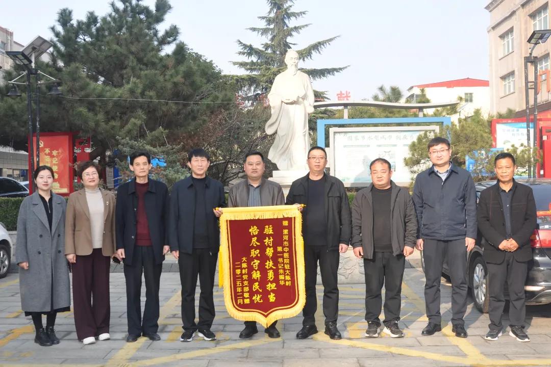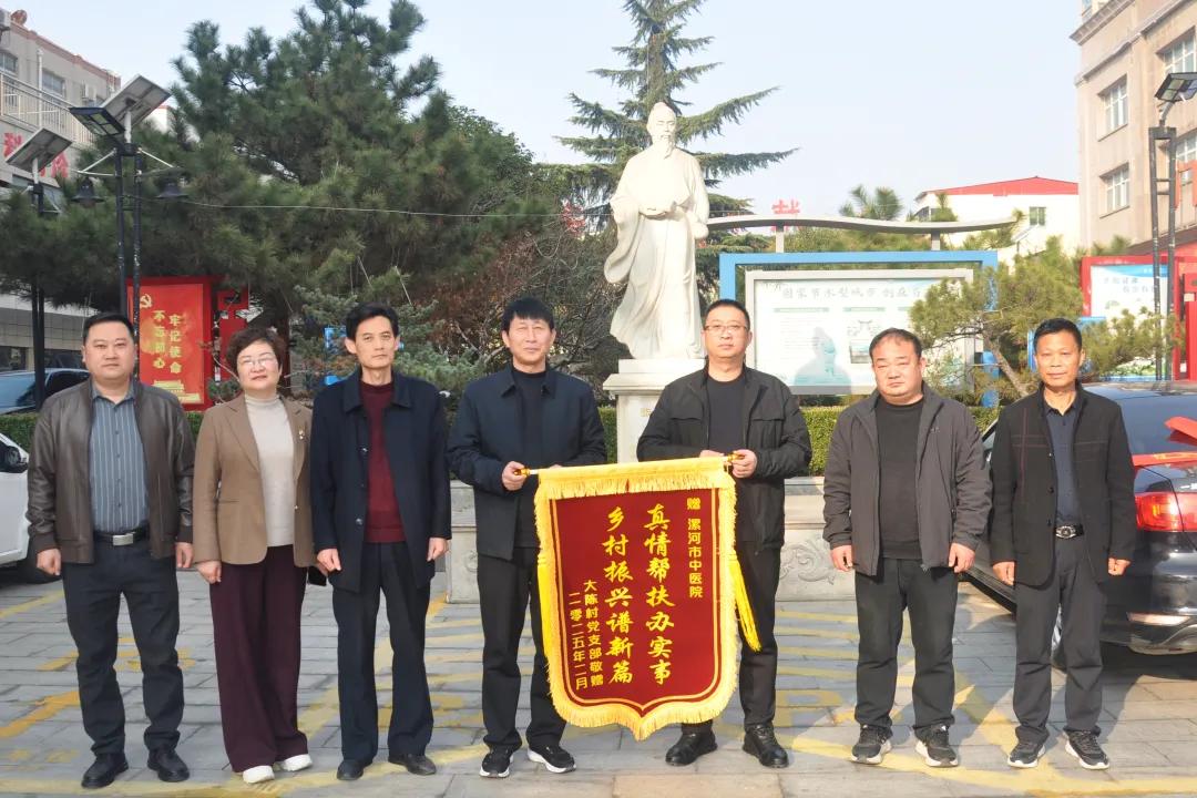 2月28日上午,源匯區(qū)大劉鎮(zhèn)黨委書記郭嘉琦帶領(lǐng)鎮(zhèn)干部同大陳村“兩委”干部一行來到漯河市中醫(yī)院,將“深情幫扶辦實事,鄉(xiāng)村振興譜新篇 ”和“駐村幫扶勇?lián)?,恪盡職守解民憂”兩面錦旗分別送到漯河市中醫(yī)院黨委副書記、副院長張文吉和醫(yī)院派駐大陳村“第一”書記朱振華的手中,以此感謝漯河市中醫(yī)院兩年多來對大劉鎮(zhèn)大陳村脫貧攻堅以及鄉(xiāng)村振興工作的傾情幫扶和大力支持,院黨委副書記、副院長張文吉帶領(lǐng)相關(guān)科室負責人接待并召開座談會。