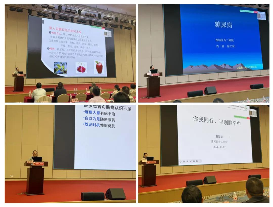 授課現(xiàn)場,風濕免疫病專家劉國鋒教授、心血管內科一病區(qū)主任陳建忠、神經內科二病區(qū)主任曹愛華、內分泌科主任徐文儉分別圍繞《痛風的干預策略》《胸痛識別急救與冠心病的預防》《你我同行、識別腦卒中》《糖尿病的防治》進行精彩分享。