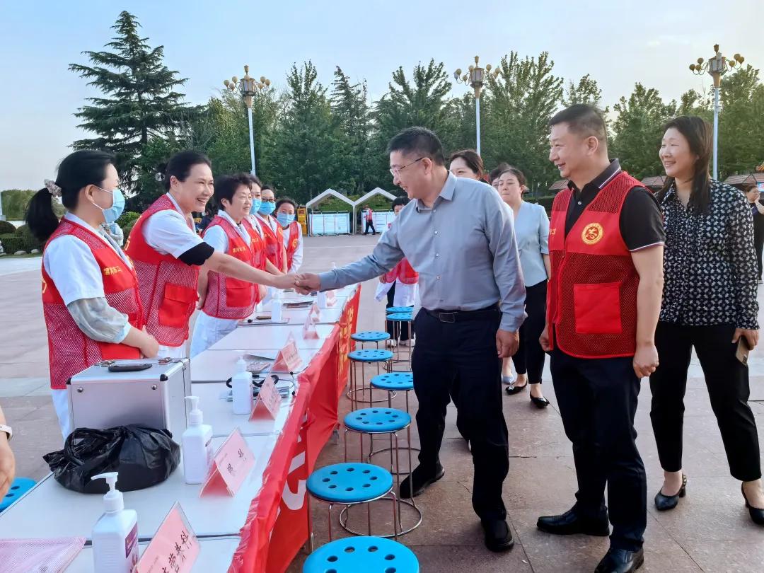 市殘聯(lián)黨組書記王向良來到義診活動現(xiàn)場,在市二院黨委書記魏松陪同下,看望慰問義診專家。