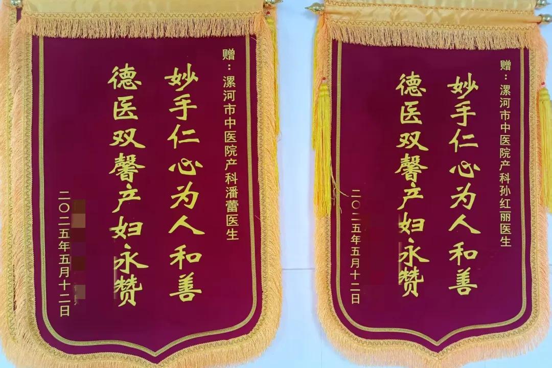 患者及家屬對婦產(chǎn)科團隊醫(yī)療技術(shù)及應(yīng)急處理非常滿意,在康復(fù)出院后,送來兩面錦旗,上面寫著“妙手仁心為人和善,德醫(yī)雙馨產(chǎn)婦永贊”的字樣,飽含著對婦產(chǎn)科醫(yī)生及護理團隊的感激之情,也是對科室工作的認可。