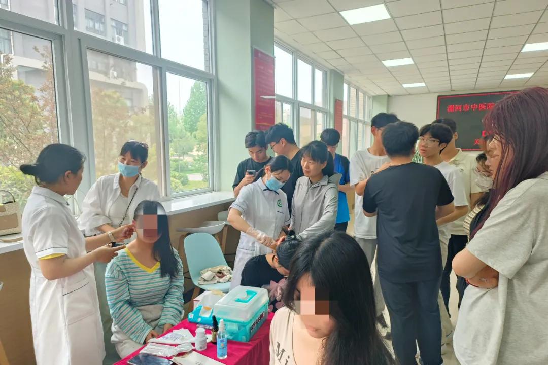 本次活動(dòng)精心組織了由頭痛失眠科、中醫(yī)內(nèi)科、針灸推拿科、皮膚科、疼痛科、外科、男性科等多學(xué)科專家組成的醫(yī)療團(tuán)隊(duì),為師生提供專業(yè)診療服務(wù)。活動(dòng)當(dāng)天,漯河市中醫(yī)院門診部七大科室的專家們?cè)缭绲貋淼搅爽F(xiàn)場(chǎng),準(zhǔn)備迎接前來咨詢的師生們。現(xiàn)場(chǎng)人頭攢動(dòng),每個(gè)科室前都排起了長(zhǎng)隊(duì)。專家們耐心細(xì)致地詢問病史、查體、開具處方,他們不僅現(xiàn)場(chǎng)解答了師生們的疑問,還傳授了一些中醫(yī)養(yǎng)生和保健的知識(shí)?,F(xiàn)場(chǎng)特別設(shè)置了中醫(yī)特色治療體驗(yàn)區(qū)和中醫(yī)藥衍生產(chǎn)品展示區(qū),通過推拿、針灸等傳統(tǒng)療法體驗(yàn)讓師生們親身體驗(yàn)中醫(yī)拔罐、刮痧、艾灸等特色療法,活動(dòng)過程中還穿插健康知識(shí)宣講,發(fā)放了健康知識(shí)宣傳頁,向師生們普及了常見病、多發(fā)病的預(yù)防、健康養(yǎng)生知識(shí)。