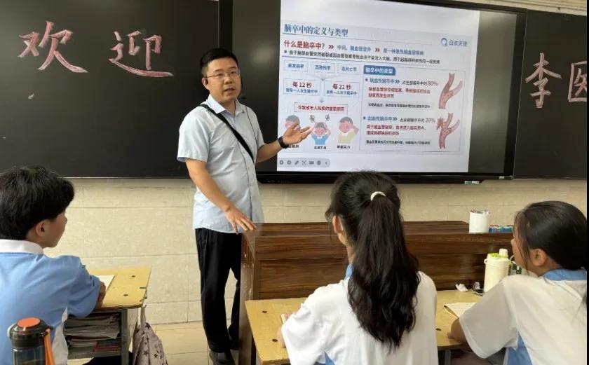 在郾城區(qū)實驗中學,神經(jīng)內(nèi)科二病區(qū)副主任李闖圍繞就《健康中國,中風識別行動》進行授課。他結(jié)合多年臨床經(jīng)驗,圍繞什么是腦卒中、腦卒中的類型、發(fā)病原因與機制、高危因素、癥狀表現(xiàn)、緊急處理與急救等多方面內(nèi)容展開講解,并教授“中風 120”口訣。通過情景模擬演示發(fā)現(xiàn)疑似癥狀后的正確應對流程。針對學生群體的生活習慣,普及疾病基礎(chǔ)知識與科學預防方法,強調(diào)要規(guī)律作息,避免熬夜、適度運動、減少高糖飲食。