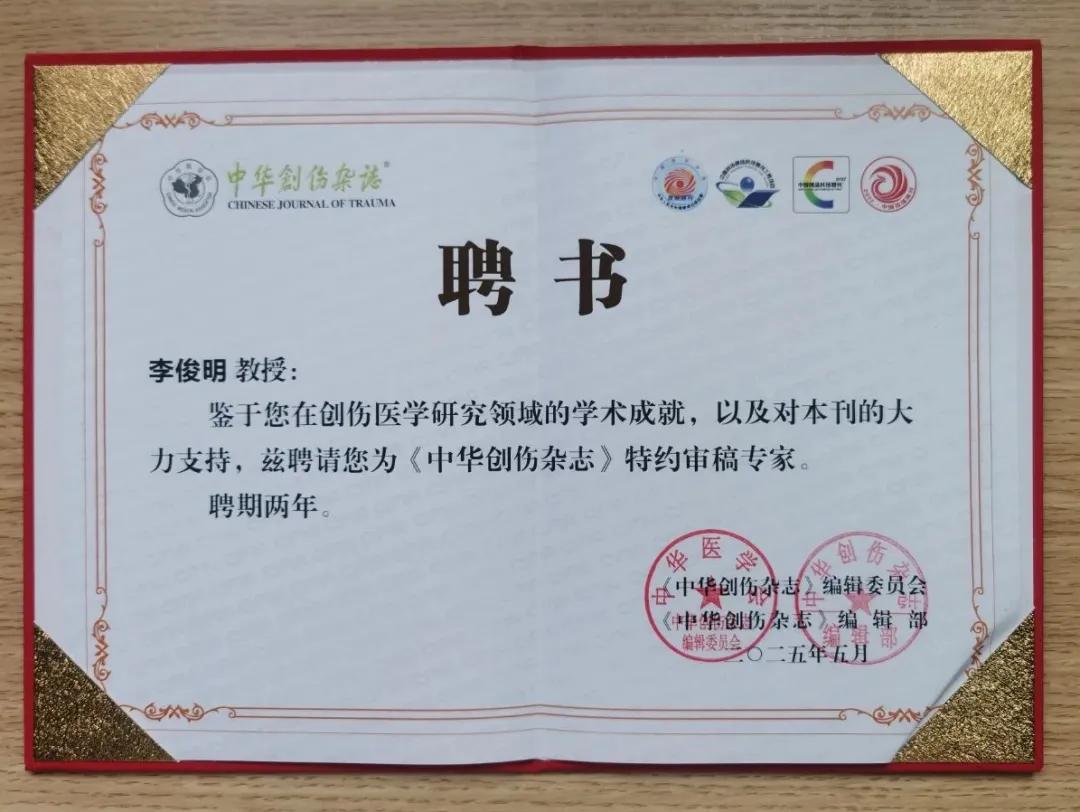 近日,漯河醫(yī)專二附院(漯河市骨科醫(yī)院、漯河市立醫(yī)院)手顯微外科(修復(fù)重建外科)主任兼大骨科副主任、骨科三級(jí)主任醫(yī)師、碩士研究生導(dǎo)師李俊明教授被《中華創(chuàng)傷雜志》特聘為特約審稿專家。此殊榮是對(duì)其在手顯微外科醫(yī)學(xué)研究領(lǐng)域?qū)W術(shù)能力的肯定,也彰顯了醫(yī)院在該領(lǐng)域的成就,為醫(yī)院發(fā)展提供了與國(guó)內(nèi)外頂尖專家交流的寶貴機(jī)會(huì)。