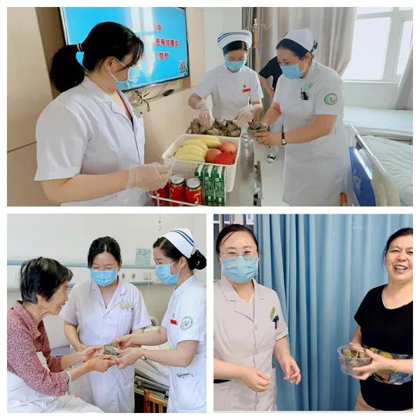 5月30日上午,老年醫(yī)學科醫(yī)護人員帶著精心準備的粽子、新鮮水果、牛奶等,走進病房為老人們送上節(jié)日的關(guān)懷與祝福。