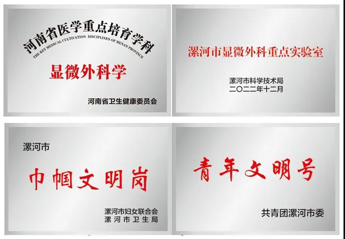 1993年,市二院在外科病區(qū)設(shè)立顯微手足外科專業(yè)組。2003年5月顯微手足外科獨立成科,是最早成立的專業(yè)科室。期間科室不斷發(fā)展壯大,業(yè)務(wù)技術(shù)顯著提升,2006年該科被確定為“河南省醫(yī)學(xué)臨床特色專科”,2011年該科被確定為“河南省醫(yī)學(xué)重點培育學(xué)科”,牽頭成立了漯河市醫(yī)學(xué)會顯微手外科分會,并一直擔任歷屆主任委員。同時,院內(nèi)設(shè)有“漯河市顯微外科重點實驗室”,在科研和臨床工作中發(fā)揮重要作用。