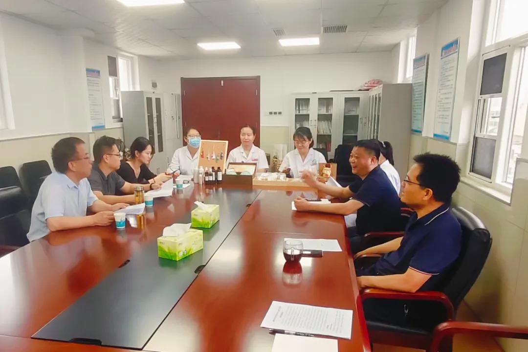 為深入挖掘中醫(yī)藥產(chǎn)業(yè)發(fā)展?jié)摿?,助推漯河中醫(yī)藥事業(yè)高質(zhì)量發(fā)展,6月20日上午,漯河市科學(xué)技術(shù)局黨組書記、局長效國強帶領(lǐng)中原食品實驗室行政副主任、實驗室服務(wù)中心主任高鵬,中原食品實驗室綜合行政部部長,實驗室服務(wù)中心綜合辦公室副主任張艷一行三人來院調(diào)研。漯河市中醫(yī)院紀(jì)委書記劉家棟,藥學(xué)部主任陳朝鋒以及中藥衍生品研發(fā)團隊和相關(guān)醫(yī)療專家等人員參加會議。