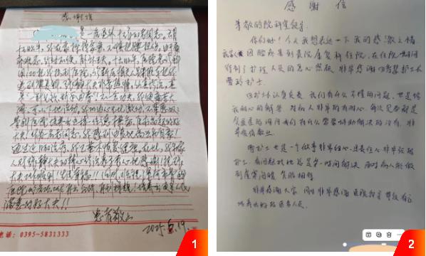 另一封感謝信來自因腰疼住院的患者,信中感謝了護(hù)士長田智慧和護(hù)士曹玲。治療期間,兩位護(hù)理人員將專業(yè)、細(xì)致的服務(wù)貫穿始終。從日常康復(fù)護(hù)理操作到患者心理疏導(dǎo),她們始終保持高度的責(zé)任心,耐心解答疑問、貼心安撫情緒,用暖心服務(wù)助力患者身心康復(fù),贏得患者由衷的信賴與感激。