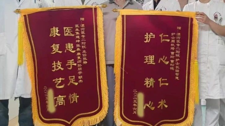 出院之際,患者特意送來(lái)兩面錦旗:一面寫(xiě)給護(hù)理團(tuán)隊(duì),致謝“仁心仁術(shù),護(hù)理精心”;一面獻(xiàn)給醫(yī)生與治療師,感恩“醫(yī)患手足情,康復(fù)技藝高” 。這一面面的錦旗,是認(rèn)可,更是康復(fù)醫(yī)學(xué)科“以患者為中心”的生動(dòng)寫(xiě)照。