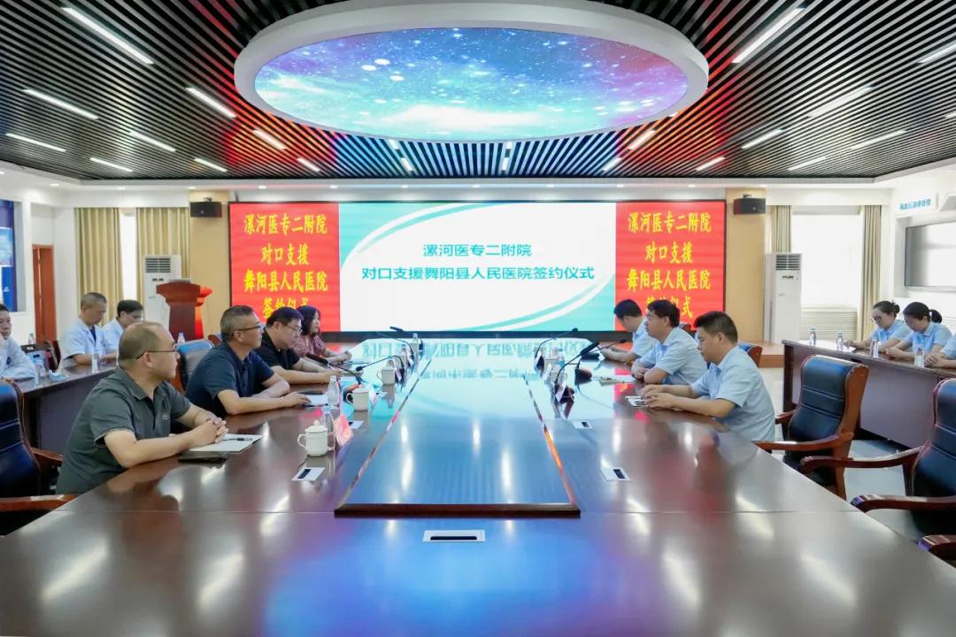 7月1日,在舞陽縣人民醫(yī)院會議室舉行漯河醫(yī)專二附院對口支援舞陽縣人民醫(yī)院協(xié)議書簽訂儀式。漯河醫(yī)專二附院黨委書記柴運(yùn)洪、副院長鄭建新、醫(yī)務(wù)科主任徐向峰,舞陽縣衛(wèi)健委副主任楊云峰、婦幼股股長張艷麗,舞陽縣人民醫(yī)院黨委委員、副院長魏廷舉、醫(yī)務(wù)科科長馬瓊,以及兩院專家代表共同出席。