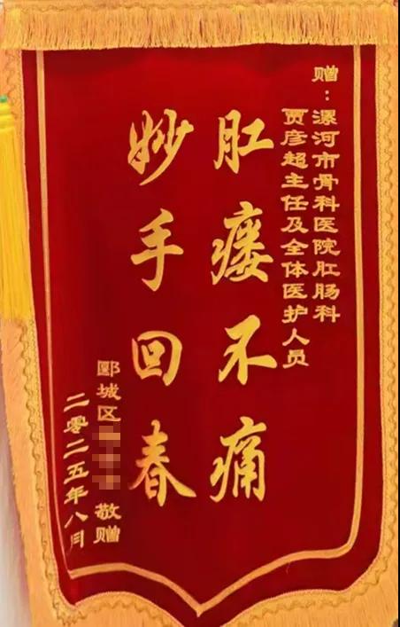 近日,在漯河醫(yī)專二附院(漯河市骨科醫(yī)院、漯河市立醫(yī)院)肛腸科,患者將一面寫有“肛瘺不痛,妙手回春”的錦旗送到了賈彥超主任手中,以此表達(dá)她對(duì)賈主任及其醫(yī)療團(tuán)隊(duì)精湛醫(yī)術(shù)和貼心關(guān)懷的誠(chéng)摯感謝。這面錦旗背后,是一段患者重獲健康、擺脫病痛折磨的暖心歷程。