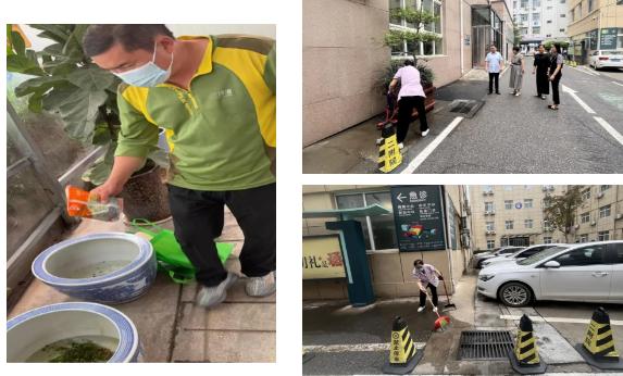 對發(fā)現(xiàn)和存在的隱患問題,醫(yī)院迅速開展行動,啟動系統(tǒng)化的外圍環(huán)境清積水專項行動??倓湛茽款^部署保潔團隊嚴格按照網(wǎng)格化分工,深度清潔垃圾桶周邊的頑固積水污漬,同步清空空調(diào)外機接水盤蓄水,及時清理各類殘留積水,確保每一處積水隱患點進行清除。