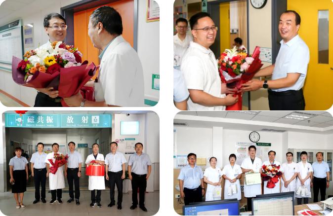 每到一個科室,醫(yī)院領(lǐng)導(dǎo)都將精心準(zhǔn)備的鮮花、香甜的蛋糕以及貼心的慰問品送到每一位醫(yī)師手中。一句句 “辛苦了”“注意休息”,讓醫(yī)師們深切感受到醫(yī)院的關(guān)懷與支持。院領(lǐng)導(dǎo)們高度肯定并贊揚(yáng)了醫(yī)師們在臨床工作中的辛勤付出與無私奉獻(xiàn)。他們強(qiáng)調(diào),醫(yī)務(wù)工作者是社會中最崇高的職業(yè)之一,醫(yī)師們憑借自己的專業(yè)智慧和汗水,日夜守護(hù)著患者的生命健康,是生命戰(zhàn)場上的 “最美逆行者”。