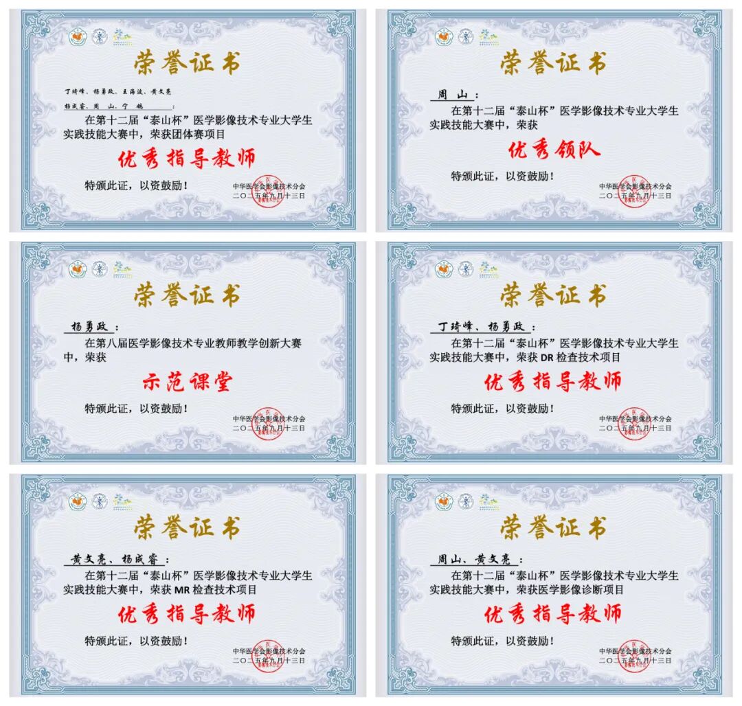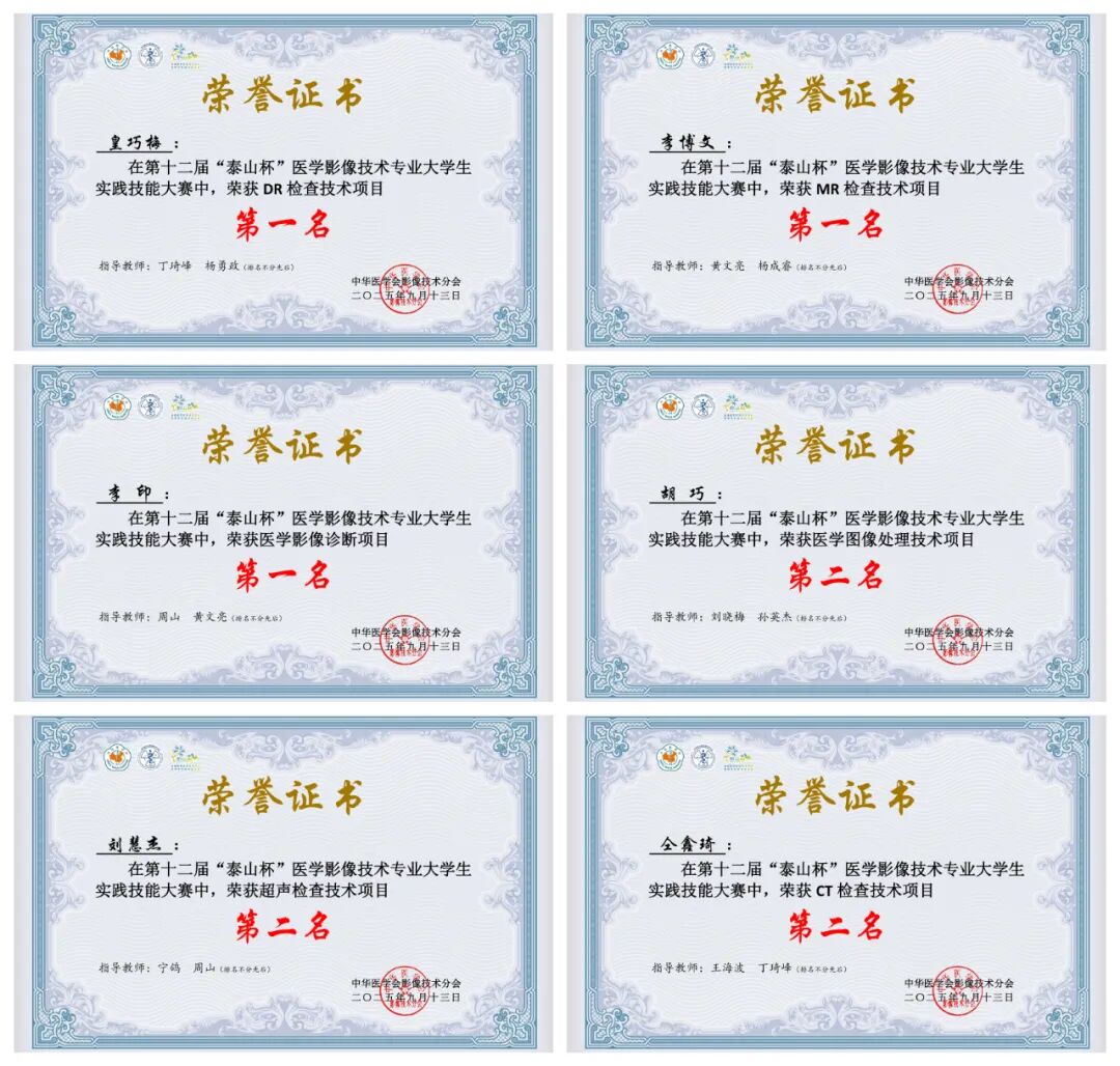 其中學生皇巧梅、李博文、李印分別榮獲DR、MRI檢查技術(shù)項目和醫(yī)學影像診斷項目第一名,劉慧杰、仝鑫琦、胡巧同學分別榮獲超聲、CT檢查技術(shù)和醫(yī)學圖像處理項目第二名,楊勇政老師在教師教學比賽中榮獲優(yōu)秀創(chuàng)新大賽示范課堂,最終參賽團隊以優(yōu)異的綜合成績摘得團體項目競賽第一名的桂冠,優(yōu)秀的成績贏得了大賽評委和參賽同道的廣泛贊譽。這也是繼2018年首次參加該賽事以來,漯河醫(yī)專二附院醫(yī)學影像教學團隊取得的又一優(yōu)異成績。