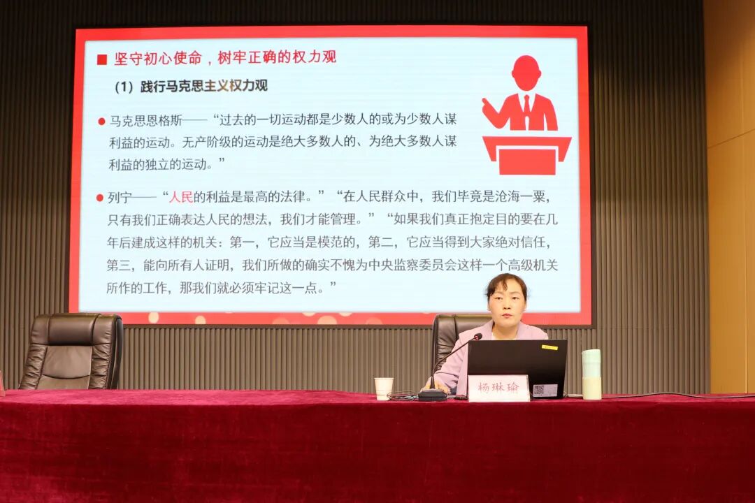 楊琳瑜以《鍥而不舍落實(shí)中央八項(xiàng)規(guī)定精神 牢固樹立正確的權(quán)力觀政績(jī)觀事業(yè)觀》為題,從堅(jiān)守初心使命,樹牢正確的權(quán)力觀;堅(jiān)持為民造福,樹牢正確的政績(jī)觀;堅(jiān)定實(shí)干擔(dān)當(dāng),樹牢正確的事業(yè)觀三個(gè)方面,為與會(huì)人員帶來了一場(chǎng)既有理論高度又有實(shí)踐指導(dǎo)意義的專題輔導(dǎo)。