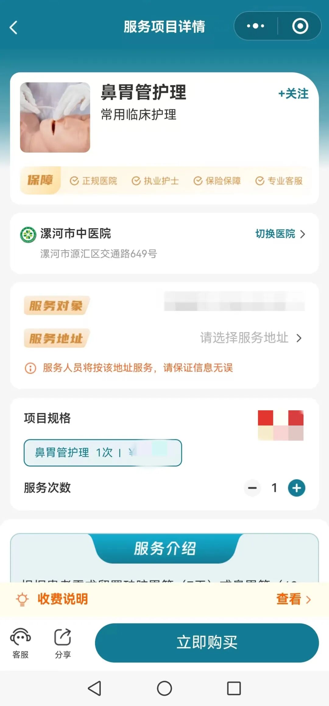 選擇服務: 根據(jù)需求,在平臺上選擇所需的護理服務項目,如靜脈采血、更換胃管/尿管、PICC維護、壓瘡護理等。