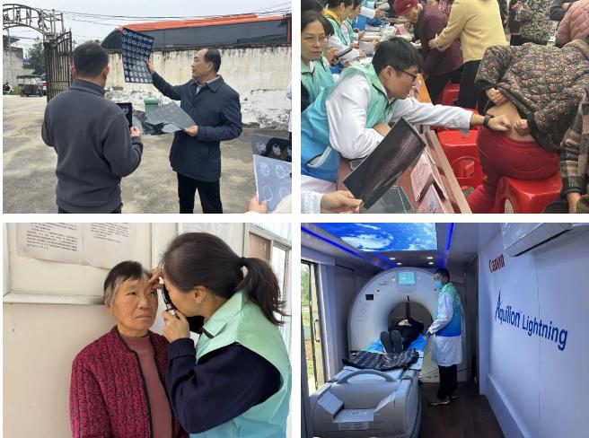 活動現(xiàn)場,專家志愿者各司其職,有序地為當(dāng)?shù)鼐用襁M行血壓、手指血糖的免費測量,進行心電圖檢查、甲狀腺彩超檢查、骨密度檢測、眼底篩查、CT檢查、體格檢查,提供用藥指導(dǎo)、健康咨詢、疾病診斷等服務(wù)。針對高血壓、糖尿病、關(guān)節(jié)炎等常見慢性病,提供個性化的用藥指導(dǎo)和飲食建議。
