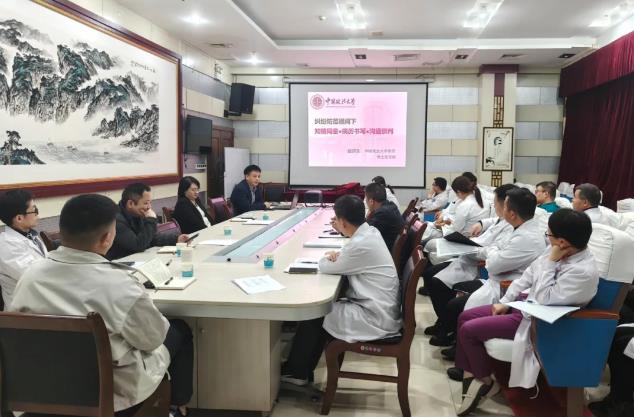 會上,醫(yī)務科副科長張茜就河南省衛(wèi)生健康委轉(zhuǎn)發(fā)《關于進一步強化醫(yī)療質(zhì)量和臨床檢驗檢測管理若干措施的通知》進行解讀。醫(yī)務科周鵬、吳仲康分別講解醫(yī)療總值班制度及2025年9月業(yè)務分析報表。最后閆丙川以“愛院、守法、病歷、上報、溝通”為主題講解了目前醫(yī)患溝通問題。