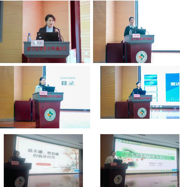 授課環(huán)節(jié),漯河醫(yī)專二附院康復(fù)科主任張靜、漯河市中醫(yī)院婦產(chǎn)科主治中醫(yī)師位路其,高級(jí)講師李少瑩,漯河醫(yī)專二附院婦產(chǎn)科助產(chǎn)士王夢(mèng)麗、婦產(chǎn)科副主任中醫(yī)師王偉偉,分別就《產(chǎn)后病的中醫(yī)治療》《中藥外治法在產(chǎn)后腹痛中的臨床應(yīng)用》《雷達(dá)技術(shù)在盆底診療中的應(yīng)用》《溫灸罐與燃脂罐臨床應(yīng)用》《中醫(yī)外治在產(chǎn)后康復(fù)中的臨床應(yīng)用》等內(nèi)容進(jìn)行分享。