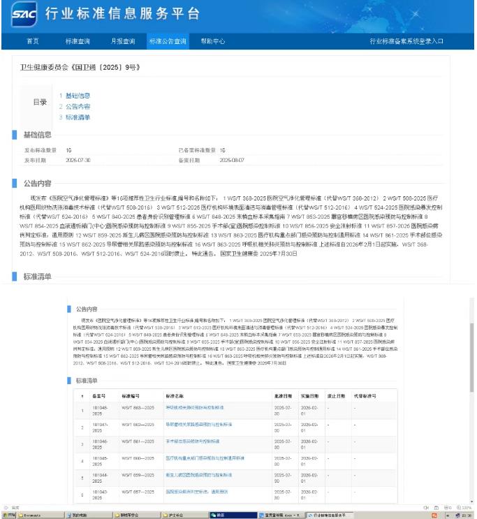 國家衛(wèi)生健康委員會近日正式發(fā)布《國衛(wèi)通〔2025〕9號》公告,公布并備案了16項推薦性衛(wèi)生行業(yè)標(biāo)準,其中14項重點圍繞醫(yī)院感染控制領(lǐng)域。該批標(biāo)準將于2026年2月1日起全面實施,同時,4項修訂前的舊版標(biāo)準同步廢止。新標(biāo)準的發(fā)布實施,對進一步規(guī)范醫(yī)院感染管理流程、提升醫(yī)療質(zhì)量安全水平具有重要意義。