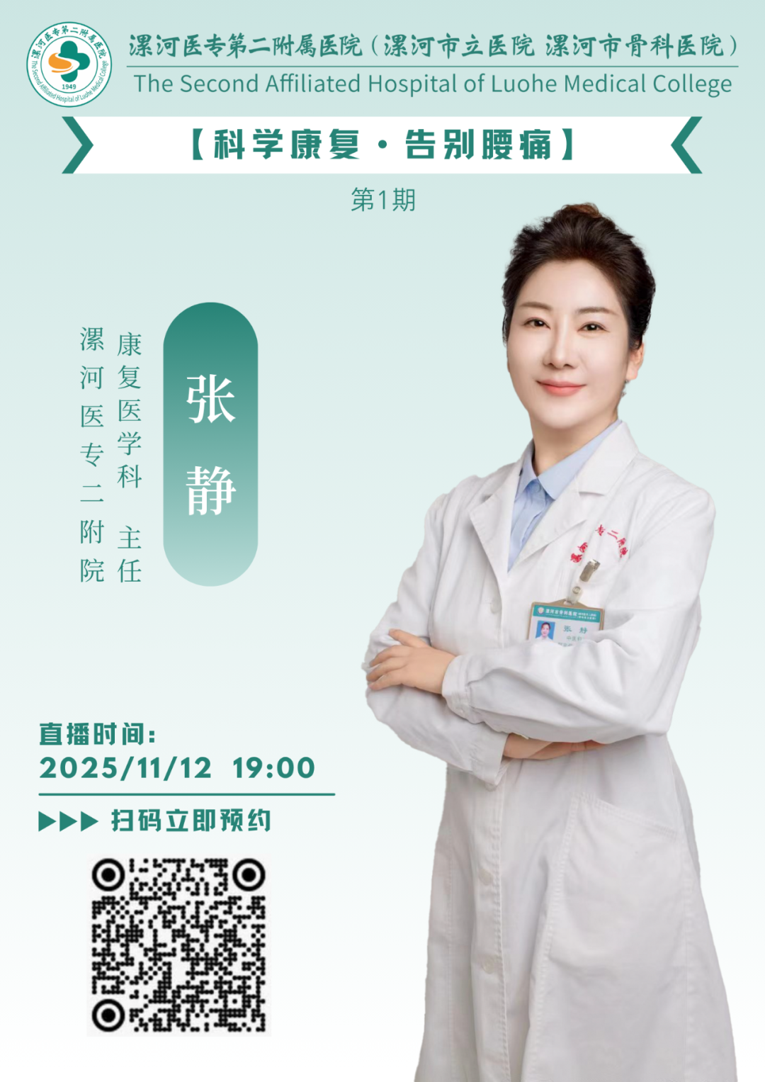 直播預(yù)告|漯河醫(yī)專二附院健康科普“云直播”第一期 科學(xué)康復(fù)•告別腰痛