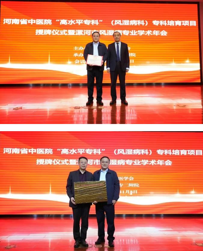 會上,王齊超院長代表漯河醫(yī)專二附院為孟慶良教授頒發(fā)特聘專家聘書。孟慶良教授代表河南省中醫(yī)院為漯河醫(yī)專二附院“高水平???rdquo;(風濕病科)專科培育項目授牌。此次授牌搭建起河南省中醫(yī)院與漯河醫(yī)專二附院的專科共建橋梁,不僅將推動漯河地區(qū)風濕病專科的體系化發(fā)展,更有望通過中西醫(yī)結合診療模式的深化,為我市風濕病患者帶來更優(yōu)質(zhì)、便捷的醫(yī)療資源。