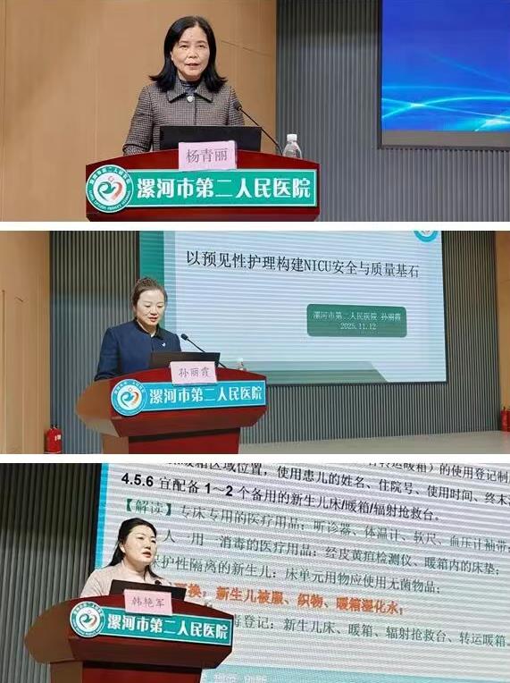 學(xué)術(shù)交流環(huán)節(jié),市中心醫(yī)院NICU護(hù)士長(zhǎng)楊青麗以《新生兒低血糖臨床規(guī)范管理專家共識(shí)》(2021)為題,系統(tǒng)闡述了新生兒低血糖的“預(yù)防、篩查、干預(yù)、隨訪”四個(gè)重點(diǎn);市二院護(hù)理部副主任孫麗霞分享了《以預(yù)見性護(hù)理構(gòu)建NICU安全與質(zhì)量基石》,點(diǎn)明預(yù)見性護(hù)理是NICU生命安全保障的基石,也是質(zhì)量持續(xù)提升的第一道防線;市二院感控辦副主任韓艷軍以《新生兒病區(qū)醫(yī)院感染預(yù)防與控制標(biāo)準(zhǔn)》進(jìn)行了交流,闡明要嚴(yán)守感控標(biāo)準(zhǔn),筑牢安全防線,保障每一位新生兒的健康與安全;市婦幼保健院兒科護(hù)士長(zhǎng)鄭文韜以《高危兒靜脈通路的合理選擇》展開,講解了高危兒靜脈通路的選擇,核心在于基于個(gè)體評(píng)估,實(shí)現(xiàn)安全與療效的最佳平衡;市二院靜療??谱o(hù)士李艷結(jié)合《兒童靜療常見并發(fā)癥的預(yù)防及處理》,提出兒童靜療安全,核心在于以預(yù)防為首;市二院傷口造口專科護(hù)士馬美華分享了《兒童常見皮膚護(hù)理與管理》,闡述嚴(yán)守預(yù)防底線,踐行精細(xì)照護(hù),是守護(hù)新生兒稚嫩肌膚、避免醫(yī)源性皮膚損傷的根本之道。