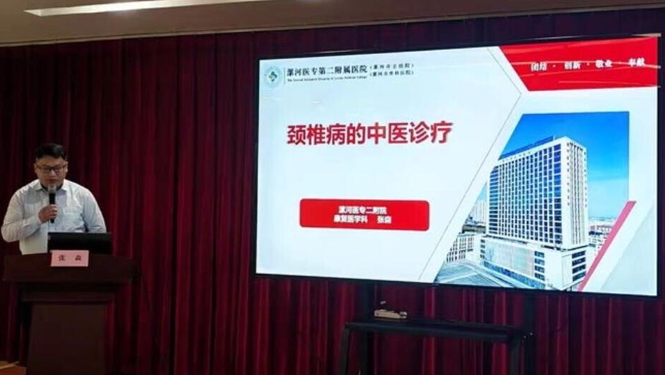 漯河醫(yī)專二附院康復醫(yī)學科主治醫(yī)師張森圍繞《頸椎病的中醫(yī)診療》開始講述。主要診療以“辨證施治、標本兼顧”為原則:辨證常見寒濕阻絡、氣滯血瘀、肝腎虧虛、氣血不足四型,通過望聞問切精準分型;治療以通經(jīng)活絡、散寒止痛、補益肝腎為核心,常用針灸、中藥內(nèi)服,配合艾灸、拔罐、牽引等外治法,同時強調(diào)避風寒、調(diào)姿勢、練功法的日常調(diào)護,從根源改善頸部氣血運行與筋骨功能。