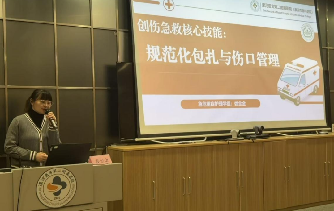 急危重癥護(hù)理學(xué)組組長(zhǎng)婁金金聚焦《創(chuàng)傷急救核心技能:規(guī)范化包扎與傷口管理》,結(jié)合“黃金1小時(shí)”救治原則,強(qiáng)調(diào)包扎操作的時(shí)效性與規(guī)范性,通過(guò)對(duì)比不同傷口處理案例,演示正確操作對(duì)控制出血、預(yù)防感染的關(guān)鍵作用,夯實(shí)醫(yī)護(hù)人員的基礎(chǔ)急救能力。