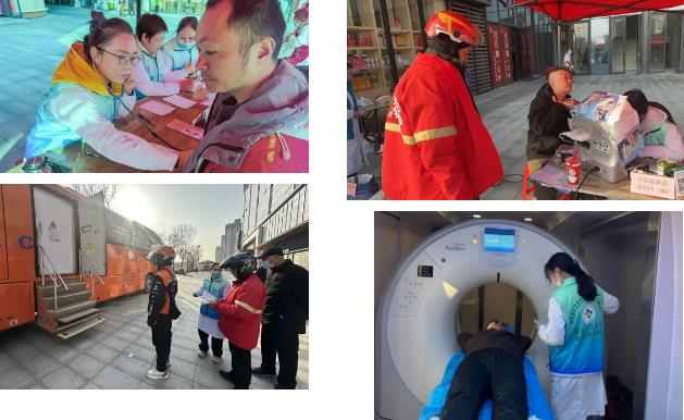 在紀委書記劉國鋒的帶領下,來自內(nèi)科、超聲科、醫(yī)學影像科等科室的骨干醫(yī)護組建專項志愿者團隊,針對外賣小哥長期騎行、作息不規(guī)律的職業(yè)特性,定制了“高效精準”的健康篩查方案——不僅涵蓋心電圖、甲狀腺彩超、血壓檢測、骨密度檢測等基礎項目,更調(diào)配院內(nèi)先進移動CT車進駐,讓小哥無需中斷工作,利用送餐間隙就能完成全方位健康評估。