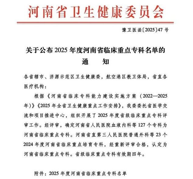 近日,河南省衛(wèi)生健康委發(fā)布《關(guān)于公布2025年度河南省臨床重點(diǎn)名單的通知》(豫衛(wèi)醫(yī)函〔2025〕47號(hào)),漯河醫(yī)專二附院(漯河市骨科醫(yī)院、漯河市立醫(yī)院)運(yùn)動(dòng)醫(yī)學(xué)科與護(hù)理??瞥晒νㄟ^(guò)評(píng)審被確定為河南省臨床重點(diǎn)???。漯河醫(yī)專二附院再添兩個(gè)省級(jí)臨床重點(diǎn)??疲瑯?biāo)志著這兩大??圃卺t(yī)療技術(shù)、科研創(chuàng)新、服務(wù)質(zhì)量及區(qū)域影響力等方面達(dá)到省內(nèi)領(lǐng)先水平。