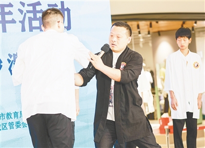 4月12日,以“非遺傳承 漯在其中”為主題的漯河市首屆非遺展演年活動(dòng)第二場(chǎng)展演在西城區(qū)萬(wàn)達(dá)廣場(chǎng)舉行。趙偉超帶領(lǐng)弟子們登臺(tái)表演了八卦掌,并為觀眾講解八卦掌的獨(dú)特技法和練習(xí)要點(diǎn),讓更多人感受到了傳統(tǒng)武術(shù)的獨(dú)特魅力。