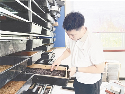 胡濱洋正在察看蟲體生長情況。