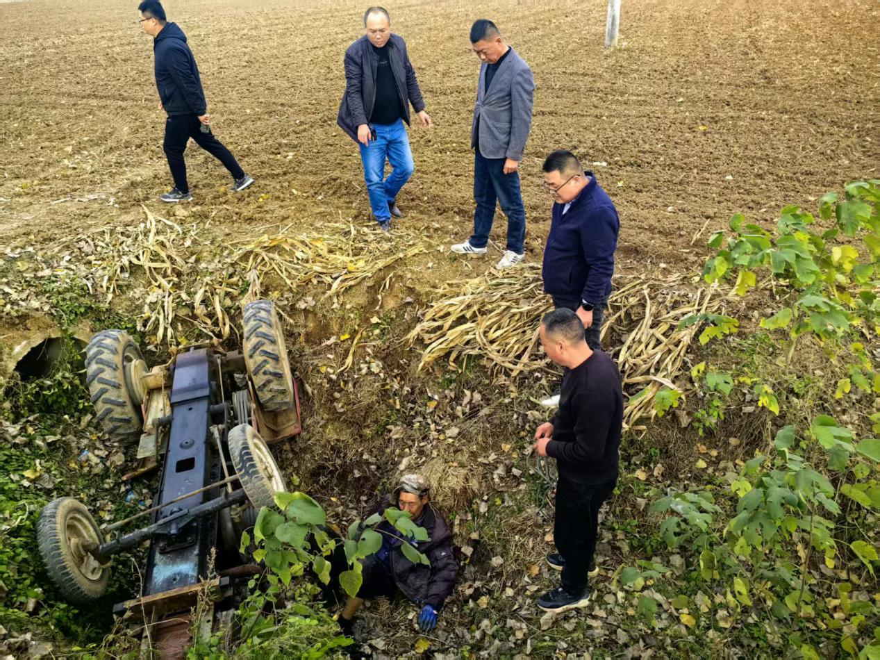 “快過(guò)來(lái),有人被拖拉機(jī)壓住了!”王行下車查看后喊道。聽(tīng)到呼喊聲,幾人立即下車,到達(dá)現(xiàn)場(chǎng)后發(fā)現(xiàn),溝里側(cè)翻著一輛拖拉機(jī),一位老人趴在溝里,他的左手手臂被拖拉機(jī)死死壓著。“王行你馬上聯(lián)系派出所和120來(lái)支援,其他人拿上繩索、木棍過(guò)來(lái)救人。”張慶林看到這一情況,立即組織在場(chǎng)人員開(kāi)展救援?,F(xiàn)場(chǎng),為將老人從車底救出,六人一起用木棍將拖拉機(jī)固定,待拖拉機(jī)被抬升的一定高度后,王行立即將老人從車底抱了出來(lái)。“大爺,你是哪個(gè)村的,現(xiàn)在感覺(jué)怎么樣,家里人電話是多少呀?”谷稅興問(wèn)到,起初老人有點(diǎn)迷糊,過(guò)了幾分鐘后才慢慢緩過(guò)來(lái)。