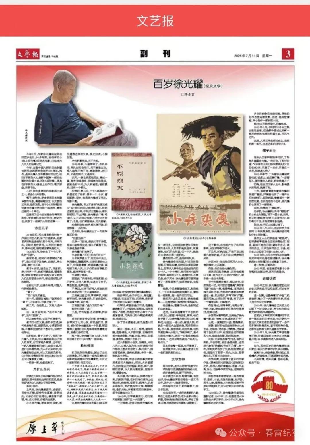 前天,拙作《百歲徐光耀》在“文藝報”發(fā)表后,點擊量迅速突破4萬。