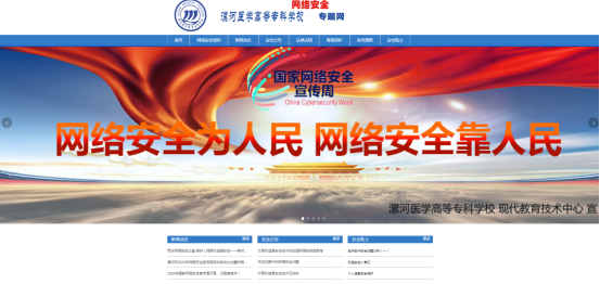漯河醫(yī)學(xué)高等??茖W(xué)校在校園網(wǎng)上開辟網(wǎng)絡(luò)安全宣傳的專欄,提供相關(guān)網(wǎng)絡(luò)安全宣傳的資料供廣大師生下載學(xué)習(xí)使用,微信公眾號發(fā)布網(wǎng)絡(luò)安全周宣傳相關(guān)知識。提升廣大師生網(wǎng)絡(luò)安全意識和防護技能,營造清朗的網(wǎng)絡(luò)環(huán)境,進一步提升師生維護國家網(wǎng)絡(luò)安全的自覺性和主動性。