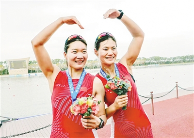 呂揚(右)與隊友張靈拿下2020年全國賽艇錦標(biāo)賽首金。