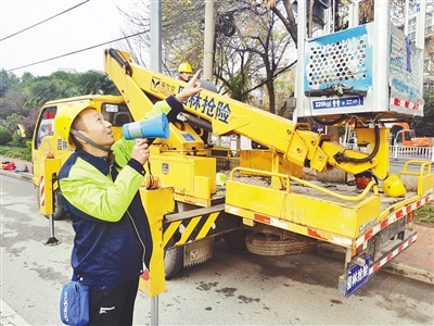 修剪工作經(jīng)常需要用到高空作業(yè)車等大型機械,為避免造成交通擁堵,王磊和同事總是在人流車流量小時開始工作。“修剪工作需要早上班、晚下班、深夜再加一趟班。”王磊笑呵呵地說。