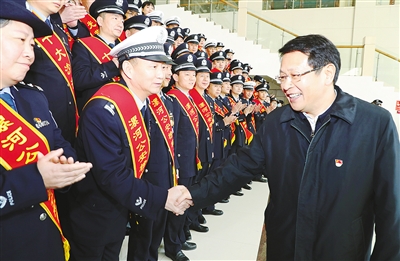 蒿慧杰指出,設(shè)立“中國人民警察節(jié)”,充分體現(xiàn)了習(xí)近平總書記和黨中央、國務(wù)院對人民警察隊伍的關(guān)心關(guān)懷。舉行慶祝首屆中國人民警察節(jié)暨2020漯河公安職業(yè)榮譽儀式,是貫徹落實黨中央、國務(wù)院決策部署的實際行動,也是市委、市政府對全市人民警察隊伍的充分肯定和高度褒獎。 近年來,全市公安機關(guān)在市委、市政府的堅強領(lǐng)導(dǎo)下,堅持以習(xí)近平新時代中國特色社會主義思想為指導(dǎo),圍繞中心、服務(wù)大局,忠實履行維穩(wěn)第一責(zé)任,主動服務(wù)發(fā)展第一要務(wù),始終走在防風(fēng)險、保安全、護穩(wěn)定、促發(fā)展的最前沿,在安保維穩(wěn)、掃黑除惡、疫情防控、脫貧攻堅、環(huán)保攻堅、創(chuàng)文攻堅等重大工作中,展現(xiàn)了公安風(fēng)采、貢獻了公安力量,也涌現(xiàn)出一大批先進集體和先進個人,充分體現(xiàn)了警察隊伍的政治品格、公仆情懷、擔(dān)當(dāng)精神。我代表市委、市政府向受表彰的先進模范表示熱烈的祝賀,向全市廣大公安民警及其家屬致以節(jié)日的問候和崇高的敬意。當(dāng)前,我市已進入全面推進社會主義現(xiàn)代化建設(shè)的新階段,希望全市公安機關(guān)和廣大公安民警以“中國人民警察節(jié)”的設(shè)立為新起點,深入學(xué)習(xí)貫徹習(xí)近平總書記關(guān)于做好公安工作的重要講話、訓(xùn)詞和指示批示精神,牢記“對黨忠誠、服務(wù)人民、執(zhí)法公正、紀律嚴明”的新時代公安工作總要求,大力弘揚英模精神、繼承優(yōu)良傳統(tǒng),以高度的政治責(zé)任感、良好的精神狀態(tài)、扎實的工作作風(fēng),全力以赴做好維護國家安全和社會穩(wěn)定各項工作,為落實新時代漯河經(jīng)濟社會發(fā)展“五個一”總體思路營造良好的社會環(huán)境,以優(yōu)異成績迎接中國共產(chǎn)黨成立100周年。各級黨委、政府要進一步關(guān)心和支持公安工作,加大綜合保障力度,落實從優(yōu)待警舉措,讓廣大公安民警工作安心、生活舒心。
