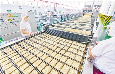 臨潁縣南街村集團依托方便面等產(chǎn)品,聚集了種子研發(fā)、糧食生產(chǎn)、倉儲、精深加工等產(chǎn)業(yè),上下游積聚成鏈。“我們一年使用面粉9萬多噸,由上游種糧大戶、合作社、種子公司、南街村面粉廠組成的聯(lián)合體專供,確保面粉和下游方便面品質(zhì)。”南街村集團方便面廠相關負責人表示,得益于產(chǎn)業(yè)鏈、供應鏈、價值鏈“三鏈同構(gòu)”,南街村打造了從田間到餐桌的逐級訂單供應鏈,還構(gòu)建了功能完善的電商和物流配送體系。