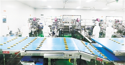 小帥才蒸蛋糕生產(chǎn)線(資料圖片)。記者 張 佩 攝
