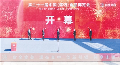 劉尚進(jìn)宣布第二十一屆中國(guó)(漯河)食品博覽會(huì)開幕。姜明、馬勇、楚玉峰、歐孟、黃鈁共同為大會(huì)啟幕。