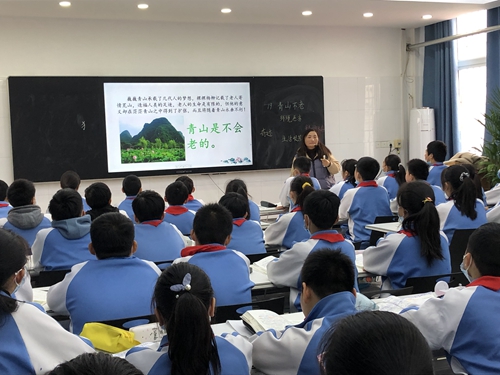 六年級的李敏杰老師,給我們帶來了《青山不老》。李老師課堂節(jié)奏緊湊,注重知識的連貫性,熟練的運用多媒體教學(xué),渲染氛圍,吸引學(xué)生注意力調(diào)動學(xué)生積極性!學(xué)生們預(yù)習(xí)認真,整節(jié)課自學(xué)氛圍很濃厚。