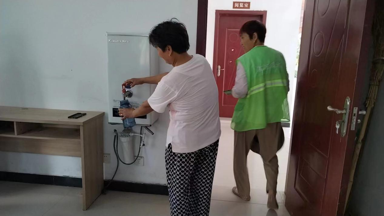 “環(huán)衛(wèi)愛心驛站”志愿者給市民和環(huán)衛(wèi)職工取水暫休
