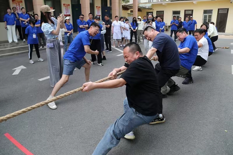 本次趣味運(yùn)動(dòng)會(huì)旨在通過(guò)輕松愉快的體育活動(dòng),增強(qiáng)職工之間團(tuán)隊(duì)協(xié)作能力、減輕工作壓力,促進(jìn)身心健康,享受運(yùn)動(dòng)帶來(lái)的快樂(lè)。運(yùn)動(dòng)會(huì)設(shè)置了雙龍戲珠、成語(yǔ)接龍、拔河比賽等項(xiàng)目。各個(gè)競(jìng)賽項(xiàng)目的設(shè)置,既 有力量的角逐,又有技巧的較量;既有趣味娛樂(lè)氛圍,又有團(tuán)隊(duì)比拼競(jìng)爭(zhēng),參賽者們齊心協(xié)力、奮勇?tīng)?zhēng)先,展現(xiàn)出了蓬勃向上的精神風(fēng)貌。拔河作為運(yùn)動(dòng)會(huì)的傳統(tǒng)項(xiàng)目,隨著裁判的第一聲哨響,將整個(gè)運(yùn)動(dòng)會(huì)氣氛推向了高潮。運(yùn)動(dòng)員們咬緊牙關(guān)、皺緊眉頭,斗志昂揚(yáng),場(chǎng)邊拉拉隊(duì)為各自隊(duì)員加油打氣,掌聲和歡呼聲此起彼伏,現(xiàn)場(chǎng)氣氛熱烈。參賽者們?cè)谶\(yùn)動(dòng)中感受快樂(lè),在快樂(lè)中提升自我,紛紛表示,此次運(yùn)動(dòng)會(huì)不僅是一次身體的鍛煉,更是一次加深同事朋友友誼的機(jī)會(huì),為未來(lái)的工作和生活注入源源不斷的動(dòng)力。