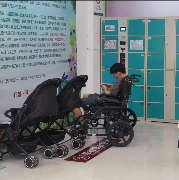 中秋節(jié)期間神州鳥園:一位游客坐輪椅玩手機(jī)很不文明。