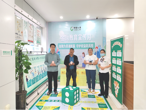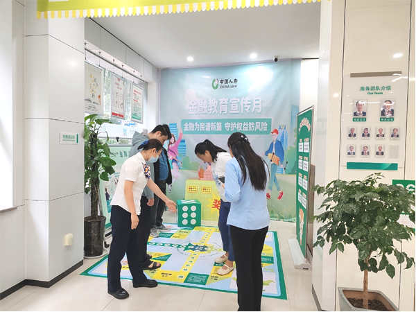 中國人壽壽險(xiǎn)漯河分公司黃河路營(yíng)業(yè)廳內(nèi)設(shè)置了全國統(tǒng)一的“金融知識(shí)便利店”,分為活動(dòng)主海報(bào)、禮品區(qū)、金融機(jī)場(chǎng)互動(dòng)版塊、“八大權(quán)益”連連看互動(dòng)板塊,將金融知識(shí)融入妙趣橫生的互動(dòng)游戲之中。金融機(jī)場(chǎng)飛行棋游戲互動(dòng)版塊分為保險(xiǎn)專機(jī)、反詐專機(jī)、反洗錢專機(jī)、反非專機(jī),客戶朋友們輪流擲骰子前進(jìn)或后退,根據(jù)點(diǎn)數(shù)對(duì)應(yīng)位置進(jìn)行做俯臥撐、背古詩、蹲起、模仿動(dòng)物叫的游戲和學(xué)習(xí)金融保險(xiǎn)知識(shí)等。“八大權(quán)益”連連看活動(dòng)讓客戶朋友們?nèi)娴亓私庀M(fèi)者八大權(quán)益等知識(shí),大家在歡聲笑語中輕松掌握金融防騙、反洗錢、防范非法集資、金融保險(xiǎn)知識(shí)等。公司對(duì)參與互動(dòng)游戲的客戶朋友們送上了中國人壽專屬的小禮品,讓客戶在參與中收獲知識(shí)與喜悅。同時(shí),寓教于樂的游戲項(xiàng)目有效提升了金融知識(shí)普及的覆蓋面與接受度,彰顯了中國人壽服務(wù)社會(huì)的責(zé)任擔(dān)當(dāng)。