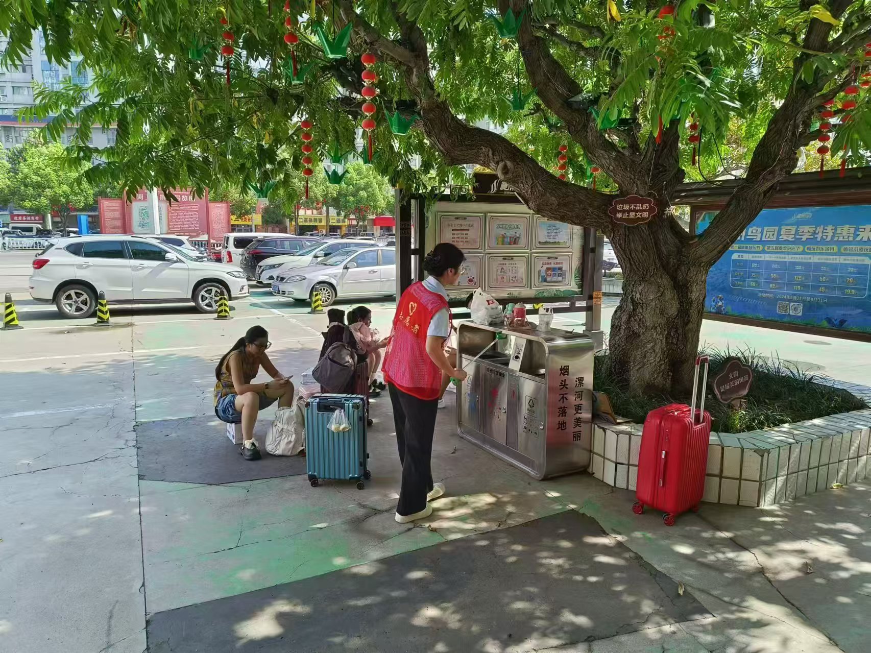 中秋節(jié)期間,神州鳥園,志愿者忙著撿垃圾。