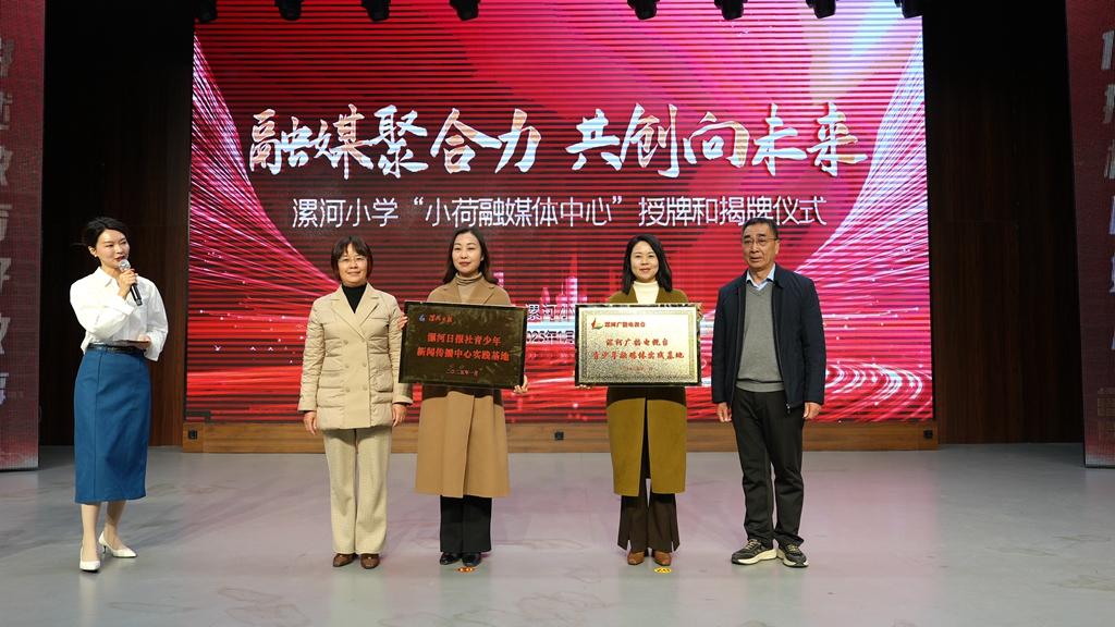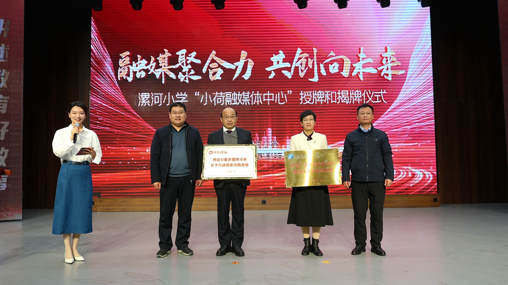 儀式上,河南日報社漯河分社、河南廣播電視臺、漯河日報、漯河廣播電視臺、漯河教育電視臺五家媒體單位向“小荷融媒體中心”授牌,標志著該中心正式成為媒體單位的青少年融媒體實踐基地。