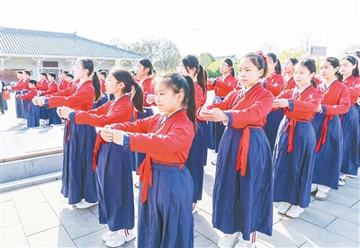 3月25日,郾城區(qū)伊坪小學(xué)“趣游漢字王國(guó)”社團(tuán)的50多名師生在許慎文化園開(kāi)展“漢字溯源”主題文化實(shí)踐活動(dòng)。